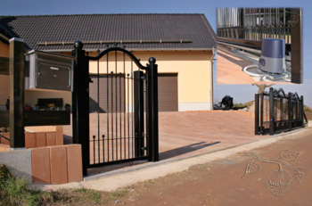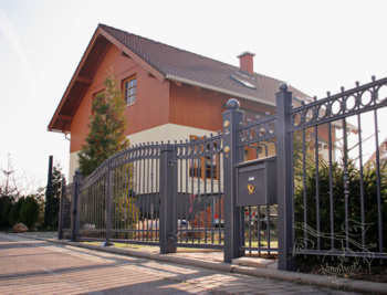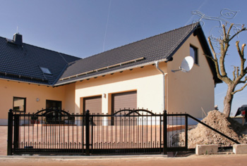 Besonderes Merkmal: Briefkastenanlagen im Zaundesign für zwei Familien. Elektrische Antriebe;