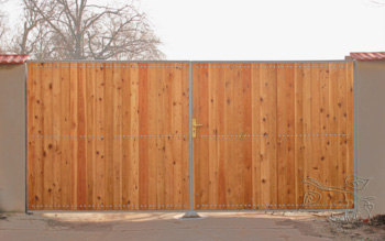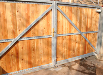 hierbei sind die Pfosten durch die überstehenden Torflügel nicht sichtbar.